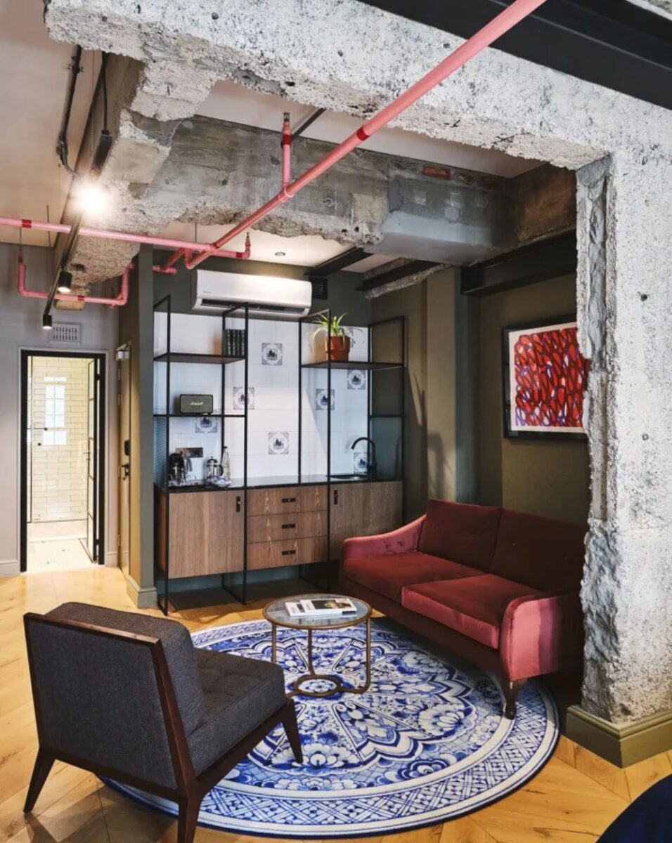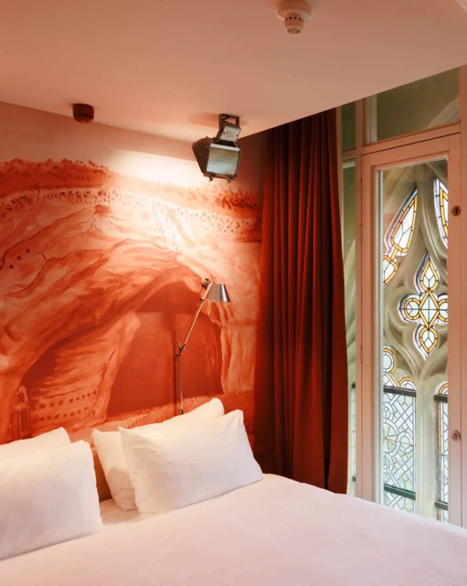 Uma joia neogótica de 1897 transformada em refúgio de arte e design. O charme histórico do edifício com arcos pontiagudos e vitrais encontra peças de ícones como Eames e Le Corbusier, criando uma galeria-hotel única.