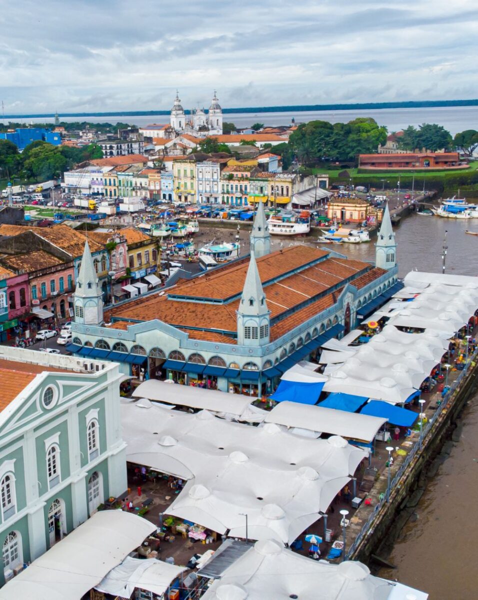 O maior mercado a céu aberto da América Latina, o Ver-o-Peso se destaca por sua grandiosa estrutura em ferro. O mercado é um paraíso para os amantes de produtos amazônicos, com especialidades como tucupi e o famoso açaí paraense.
