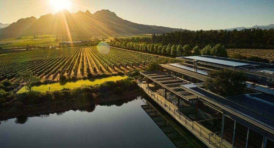 No topo da dramática Helshoogte Pass, a Delaire Graff encanta com vinhos finos – destaque para os Bordeaux blends – jardins exuberantes e uma das melhores vistas do Cabo. Arte sul-africana contemporânea permeia a experiência, que inclui degustações guiadas, menus sfosticados e um ambiente de elegância impecável. delaire.co.za