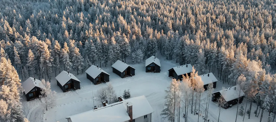 Santuário alpino minimalista com design nórdico, ar puro das montanhas e rituais imersivos de natureza.