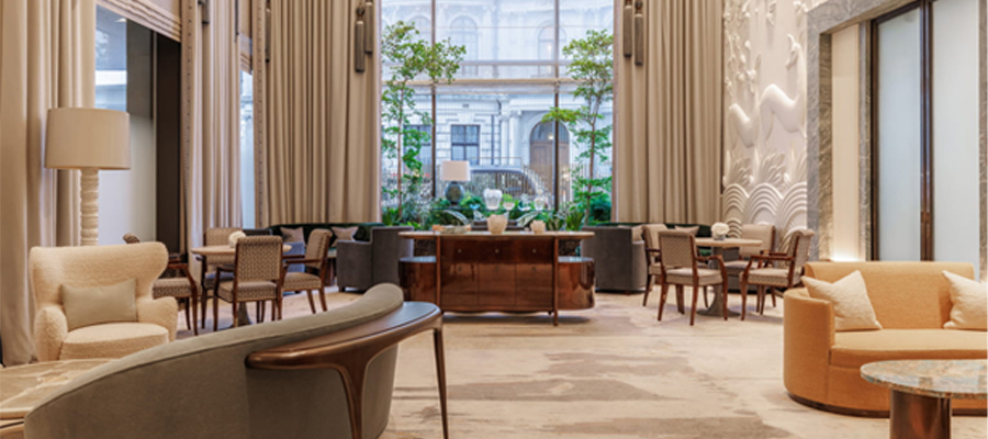 O glamour parisiense inspirado em cristal, definido por interiores couture e hospitalidade haute.