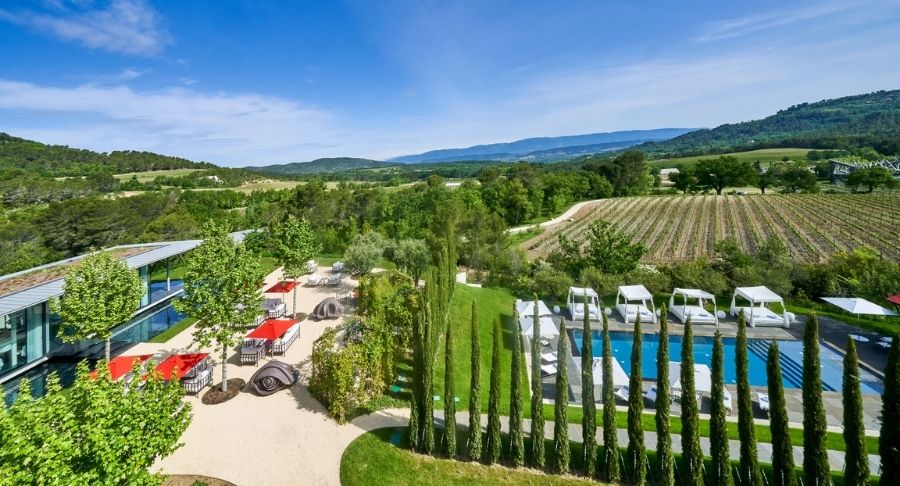 Cercada por vinhedos orgânicos e esculturas ao ar livre, a Villa La Coste combina arte contemporânea, arquitetura arrojada e hospitalidade impecável. As suítes têm vista para as colinas e foram projetadas para integrar o paisagismo com o conforto.