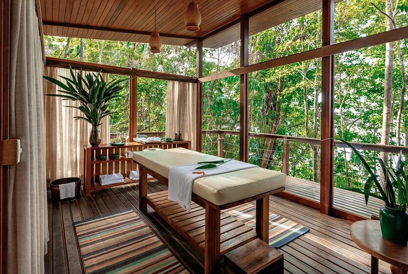 Às margens do Rio Negro, em frente ao Parque Nacional de Anavilhanas, o Anavilhanas Jungle Lodge oferece uma experiência imersiva na Amazônia. São 22 acomodações entre chalés e bangalôs panorâmicos, cercados pela floresta e projetados para conforto e integração com a natureza. A estrutura inclui piscina com vista para o rio, torre de observação de 13 metros e um deck flutuante perfeito para apreciar o pôr do sol. O restaurante combina sabores amazônicos a clássicos internacionais, enquanto as experiências guiadas revelam paisagens intocadas e a biodiversidade da região.