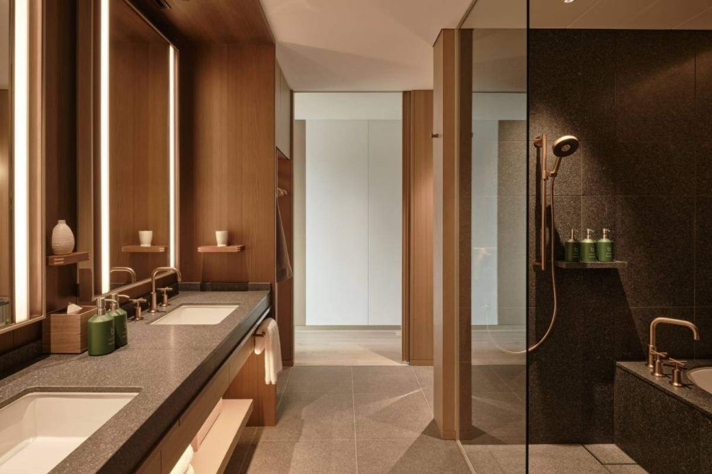 Entre os parques históricos de Osaka Castle e Naniwanomiya, o Patina Osaka propõe uma imersão sensorial onde arquitetura contemporânea e tradição japonesa se entrelaçam. Materiais como cobre envelhecido e madeira cuidadosamente selecionada marcam os espaços, enquanto os 221 quartos evocam o ritmo das estações, com vistas amplas e atmosfera serena. A gastronomia celebra a natureza e a arte local nos restaurantes P72 e BARIN, que valorizam ingredientes sazonais e técnicas japonesas. O bem-estar ocupa um espaço de destaque com spa, piscina aquecida, estúdio de yoga e academia 24h. O hotel ainda promove vivências culturais através do programa Perpetual Journeys.