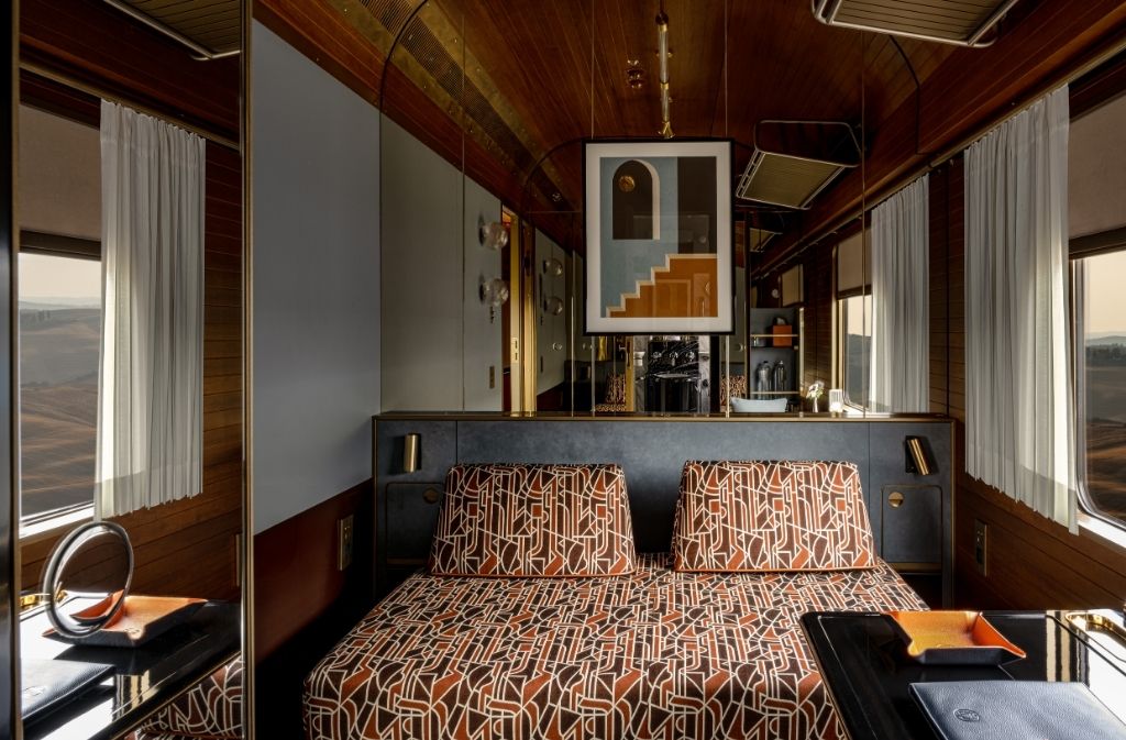 O La Dolce Vita Orient Express percorre 14 regiões da Itália com 31 cabines de design refinado, resultado de um projeto visionário entre Brindisi e Palermo. Roteiros celebram a essência italiana, do charme medieval de Siena às margens de Taormina. O interior, assinado pela Dimorestudio, evoca a era dourada do design com referências a Gio Ponti e Gae Aulenti. Sabores regionais ganham forma em criações do chef Heinz Beck. Um tributo ao tempo desacelerado e à elegância atemporal do estilo italiano.