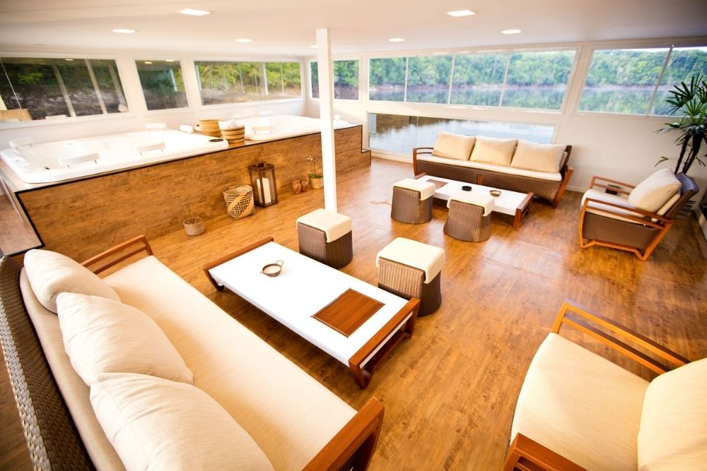 Em rotas exclusivas, o Untamed Amazon proporciona uma imersão autêntica na floresta tropical com conforto e sofisticação. Oito suítes climatizadas, seis delas com janelas panorâmicas, revelam a grandiosidade do rio e da selva ao redor. A gastronomia de inspiração local, assinada por chef internacional, acompanha coquetéis elaborados com ingredientes amazônicos. Áreas sociais espaçosas convidam ao relaxamento, com vista privilegiada do convés superior. Referência em sustentabilidade na região, a embarcação combina energia solar, tratamento avançado de água e eliminação do uso de plásticos descartáveis. Uma experiência ecológica singular, conectada à natureza e guiada pela inovação.