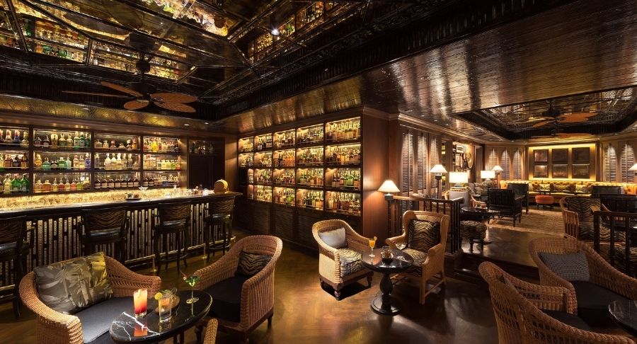 Berço do Singapore Sling, criado em 1915, o Long Bar é um ícone do estilo colonial em meio a palmeiras e rattan. Seu charme inusitado? Jogar cascas de amendoim no chão – tradição inalterada.