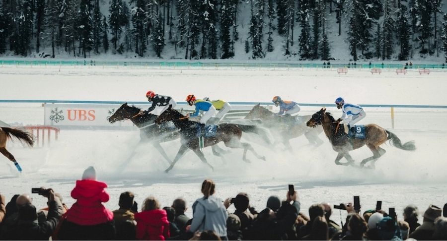 Corridas de cavalos e o lendário skijoring transformam o lago em arena de pura emoção. Cavalos de raça, jóqueis renomados e o público internacional se reúnem em três domingos de fevereiro para um espetáculo que combina adrenalina, elegância e tradição centenária nos Alpes suíços.