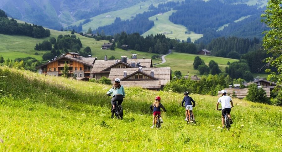 Megève floresce sob o sol de verão com trilhas aromáticas, passeios de balão, canyoning e pedaladas entre aldeias alpinas. Seu vilarejo encantador convida a flanar por boutiques e cafés em meio às montanhas verdejantes.
